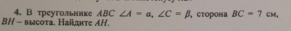 AH = AB*cos α = (7*sin β*cos α )/ sin α =7*sin β*ctg α.