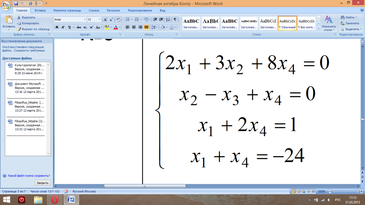 Исследовать расширенные матрицы систем линейных уравнений и в случае совместности уравнений решить их.