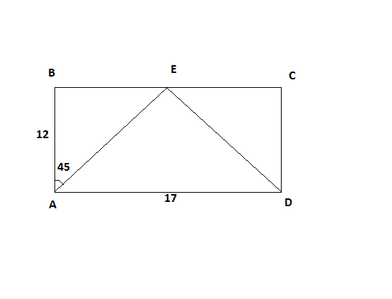 На стороне BC прямоугольника ABCD, у которого AB= 33 и AD=77, отмечена точка Е, так что угол EAB=45. Найти ED.