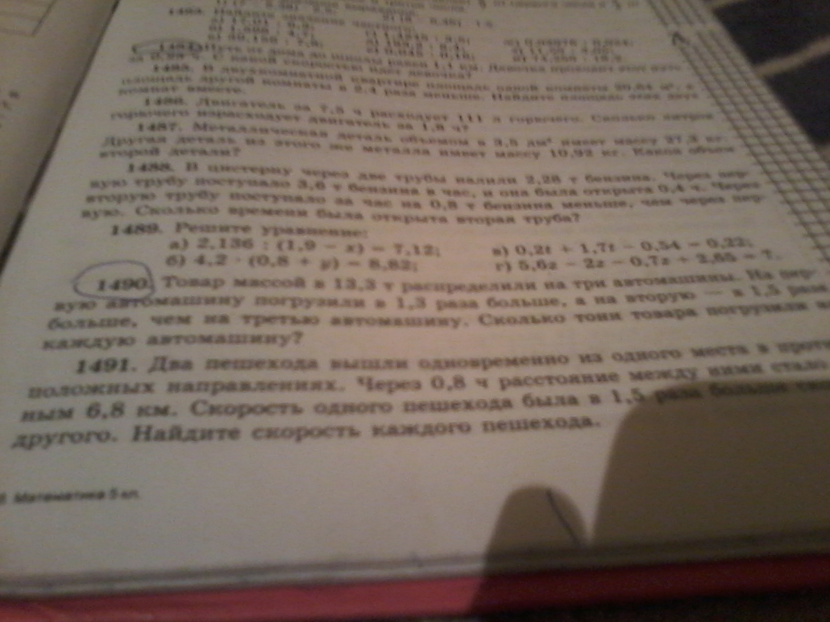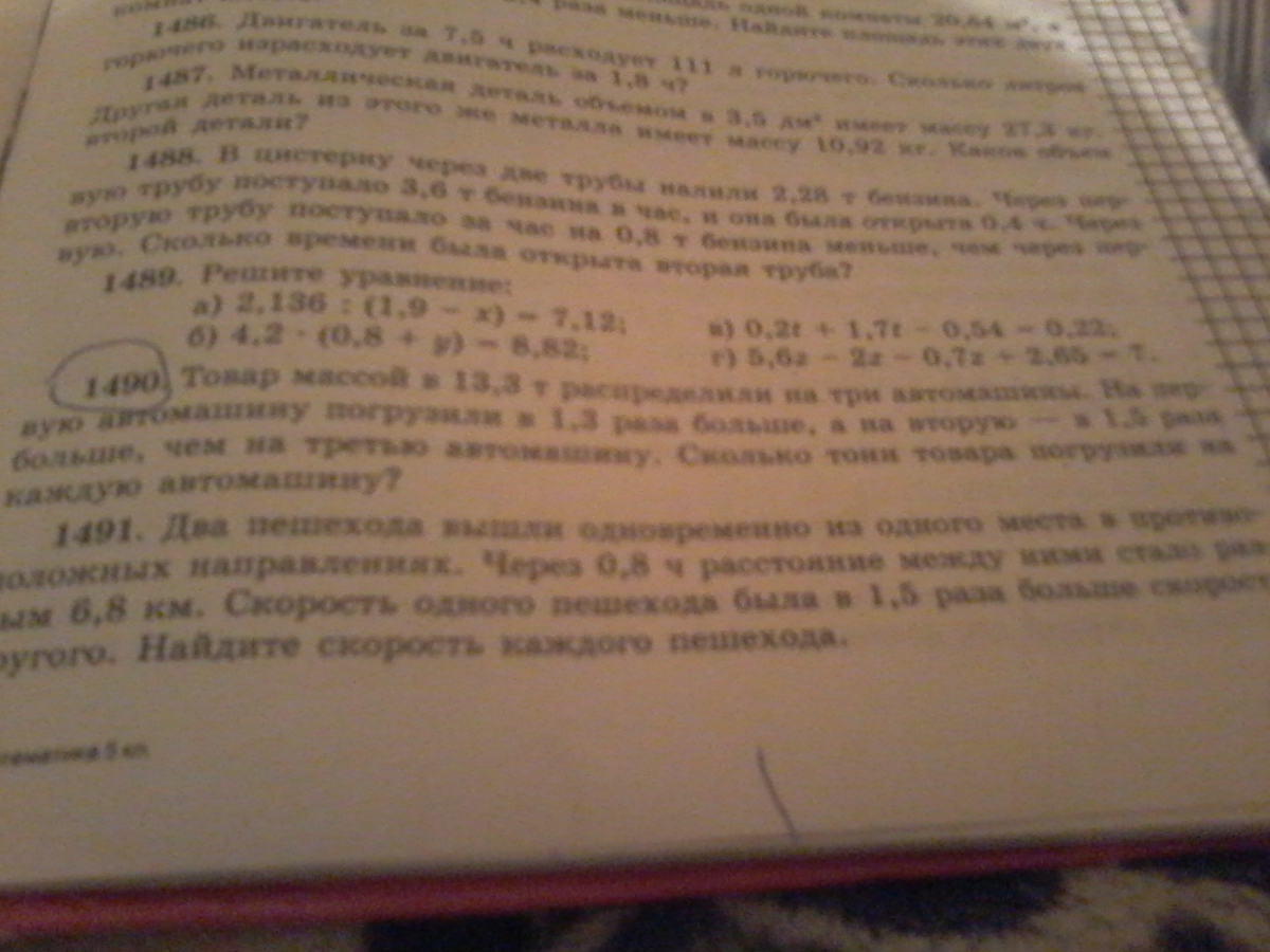 товар массой в 13.3т распредилили на три автомашины на первую автомашину погрузили а 1.3 раза больше а на вторую в 1.5 раза больше чем в третью автомашину сколько тонн товара погрузили на каждую автомашину ?