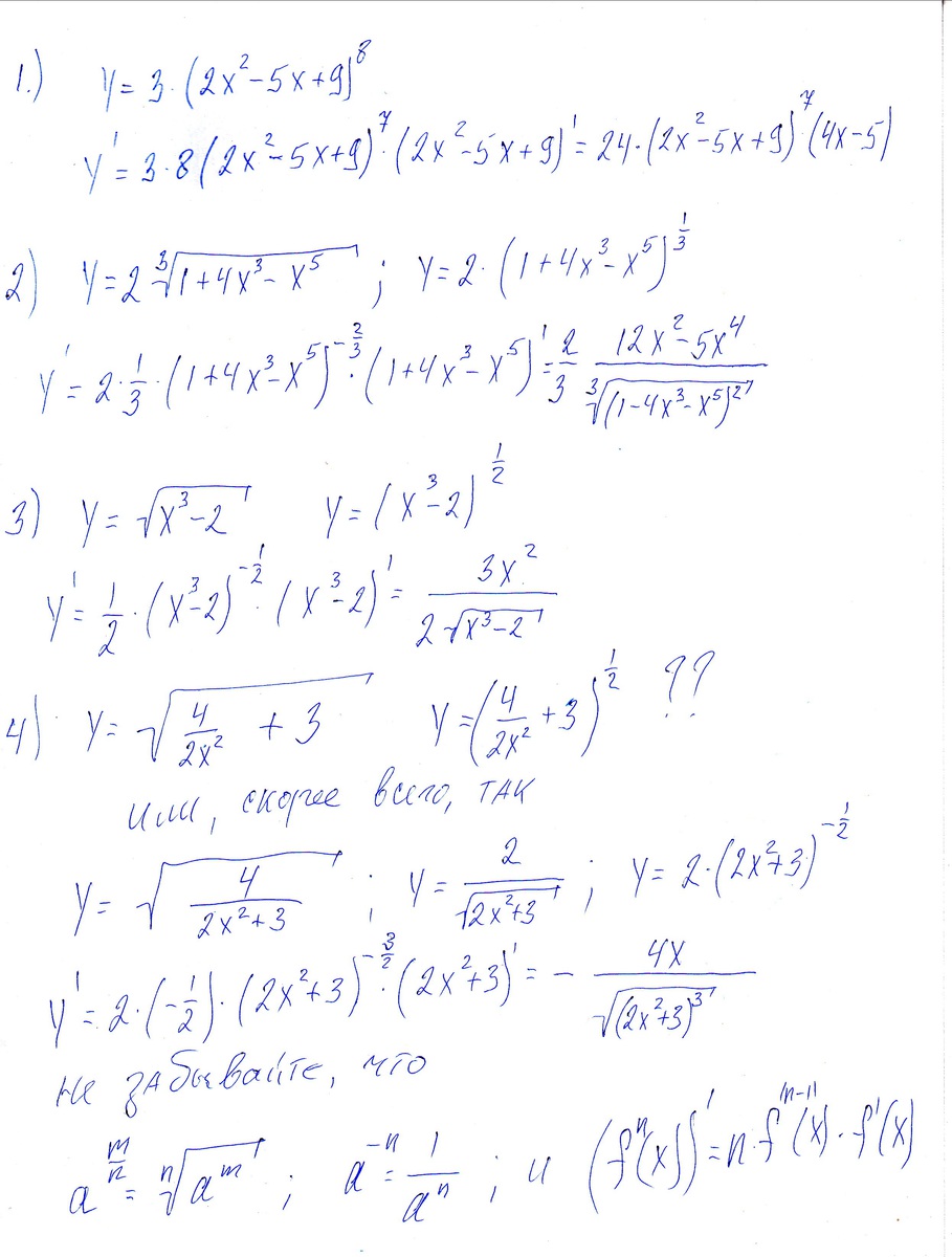 1. y=3(2x²-5x+9)^8 ^8- ето в восьмой степени