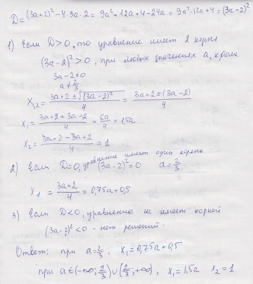 прошу помощи. Для всякого a решите уравнение 2x²-(3a+2)x+3a=0