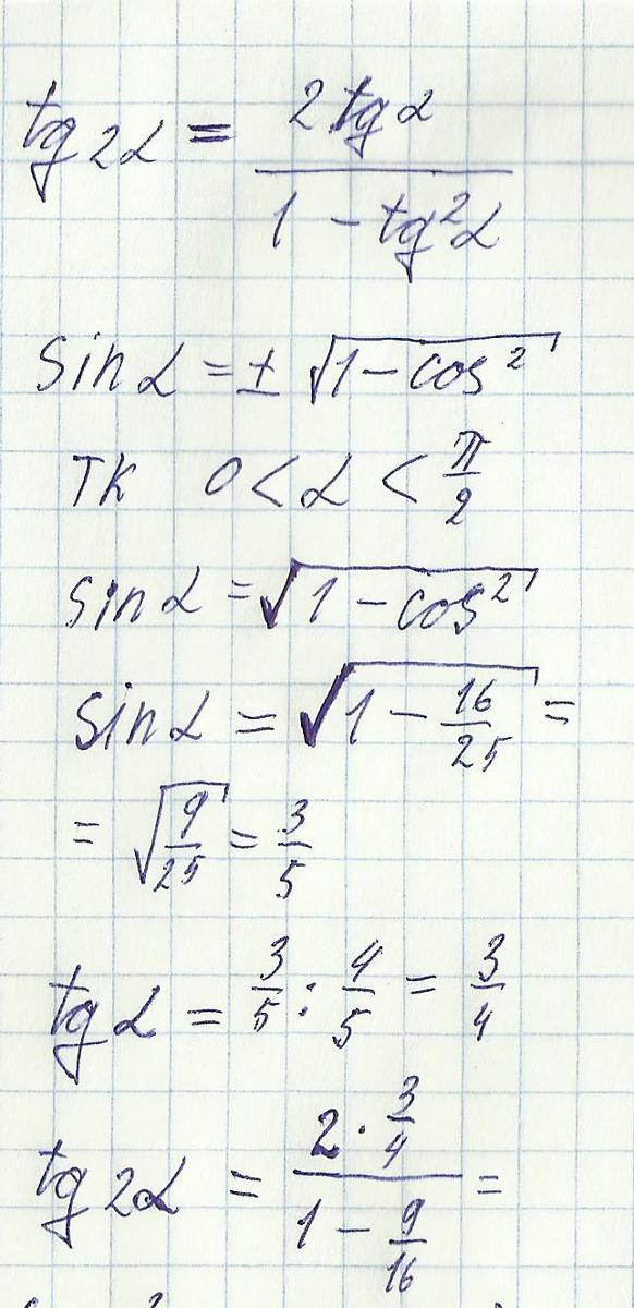 tg2a=2tga/(1-tg²a)=2*3/4:(1-9/16)=3/2:7/16=3/2*16/7=24/7
