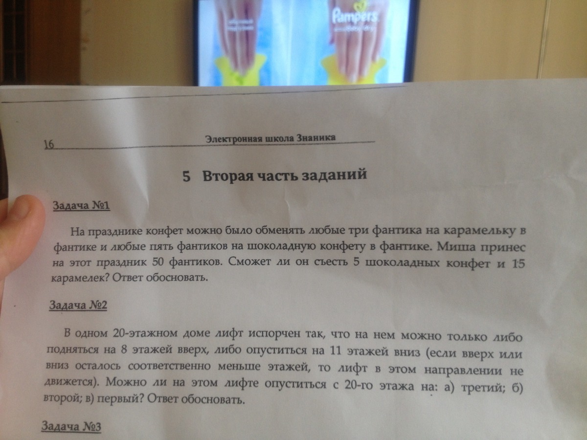 20 : 5=4 шоколадные конфеты, т.е он получает ещё 4 фантика, а на конфету нужно 5, значит он может съесть 15 карамелек и 4 шоколадные конфеты и ему не хватит одного фантика.