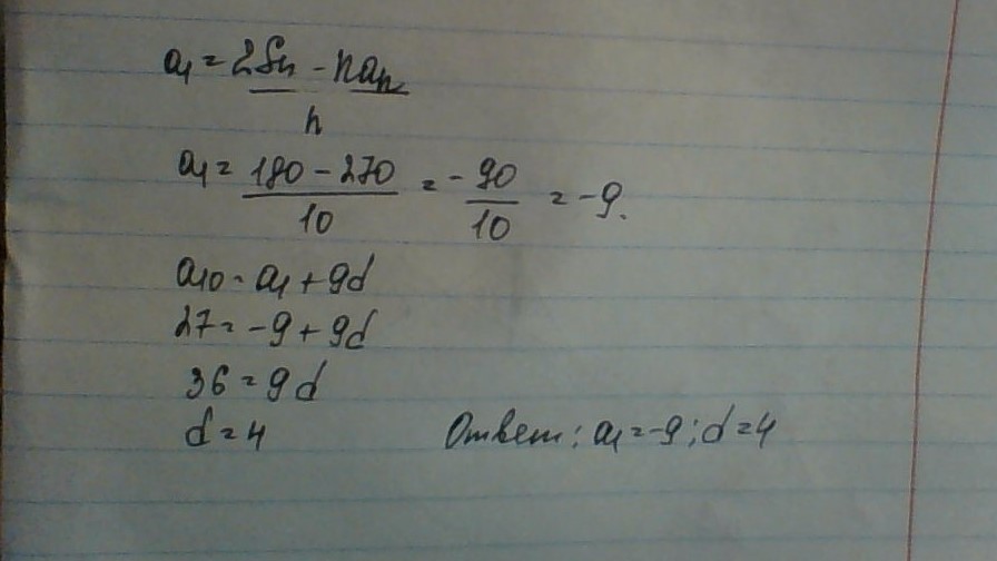 Из формулы суммы выражаем первый член.