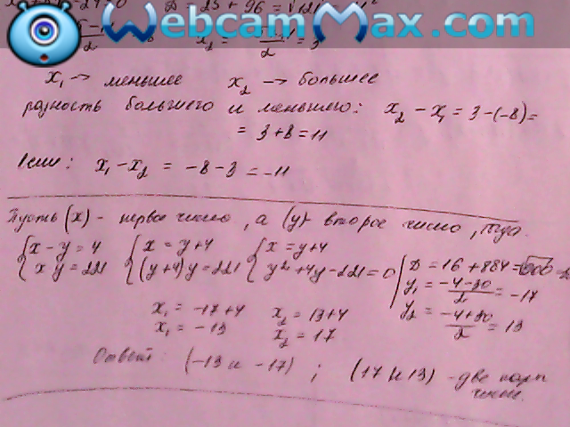 Одно число меньше другого на 4, а их произведение равно 221. Найдите эти числа...(решение)