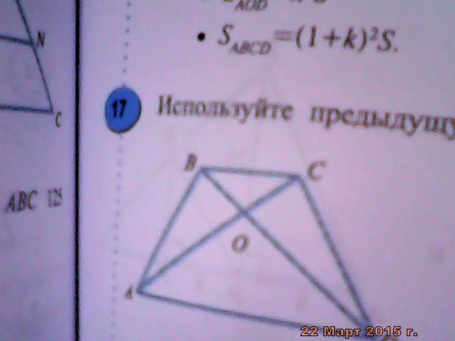 ABCD-трапеция, площадь AOD=16 cм^2, площадь ABCD=25 см^2.