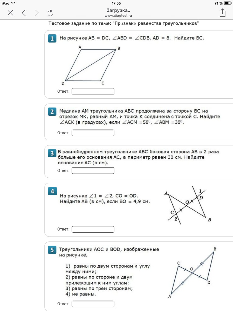 Решите пожалуйста задание по алгебре тема:Признаки равенства треугольников