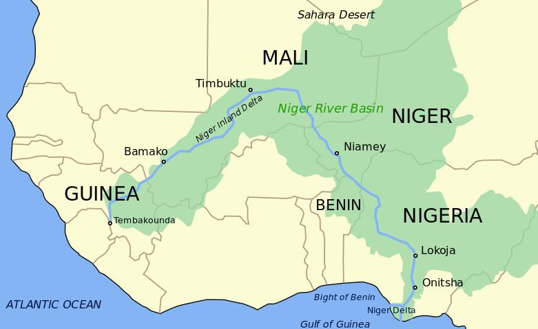 Исток находится в Гвинее, затем река течёт по Мали, Нигеру, по границе Бенина, затем протекает через Нигерию и впадает в Гвинейский залив.