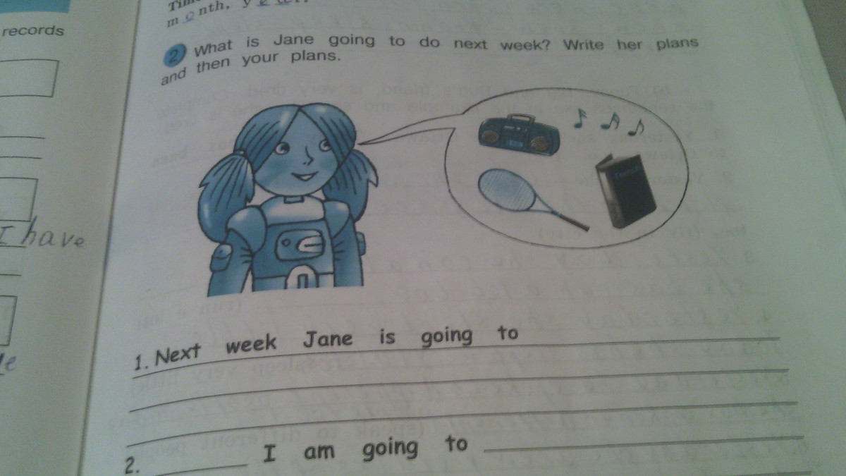Что Джейн собирается делать на следующей неделе.Напишите свои планы.Помогите пожалуйста.