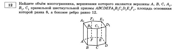 Объем многогранника равен произведению площади основания на его высоту 8*12=96