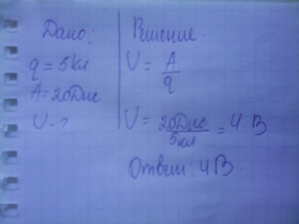 через лампочку карманного фонаря прошло 5 кл электричества причём батарея израсходовала 20 Дж электрической энергии определите напряжение батареи фонаря"