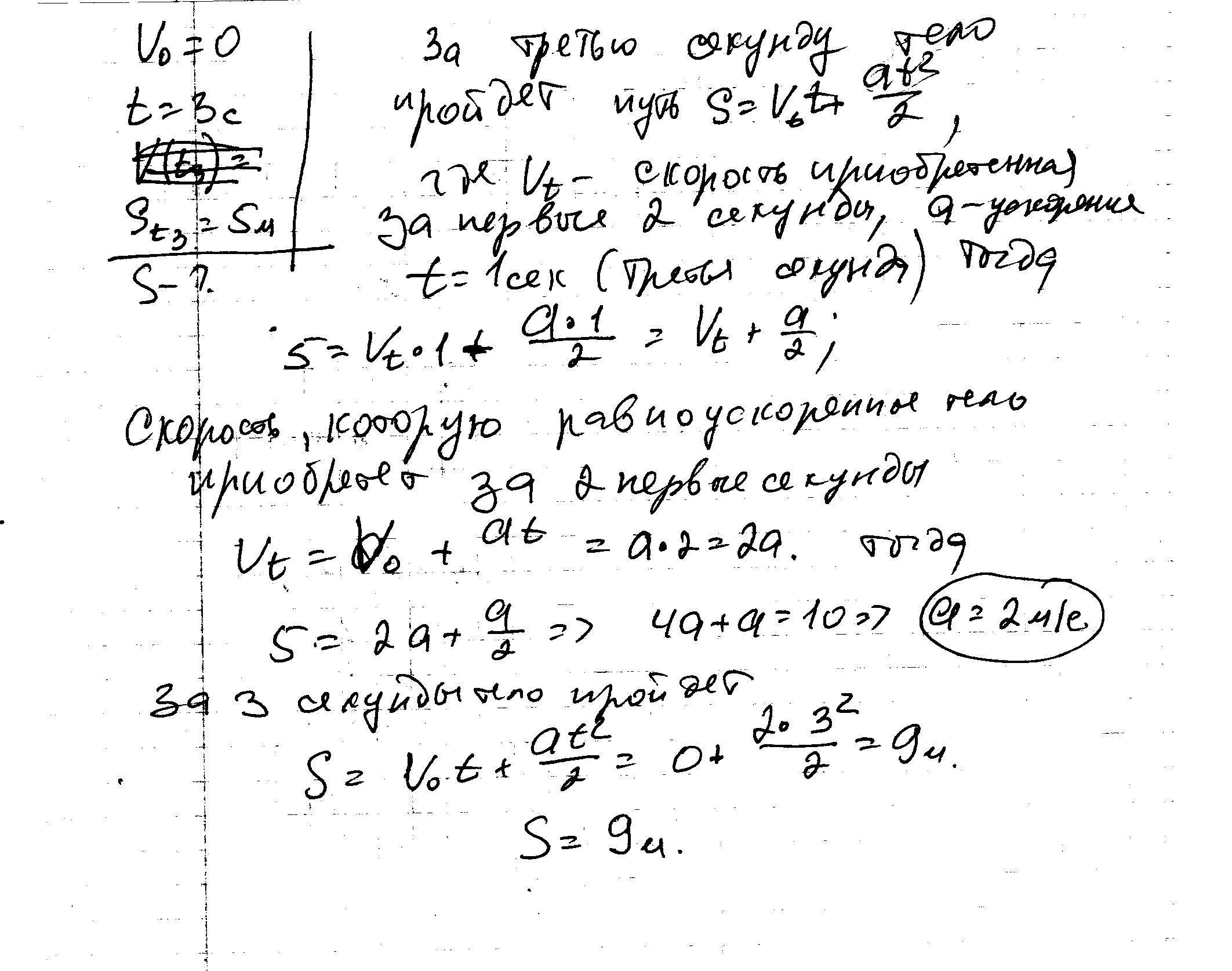 51. Покоящееся тело начинает движение с постоянным ускорением. В третью секунду оно проходит путь 5 м. Какой путь тело пройдет за 3 с?