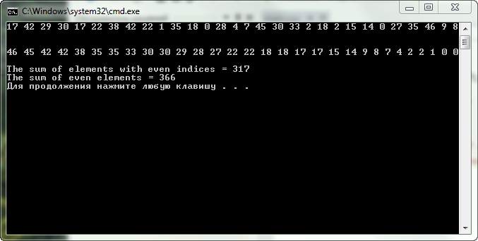 cout << "nThe sum of elements with even indices = " << sumEvenIndex