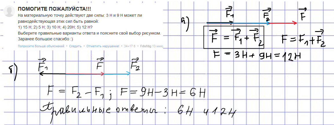 На материальную точку действуют две силы: 3 H и 9 H может ли равнодействующая этих сил быть равной: