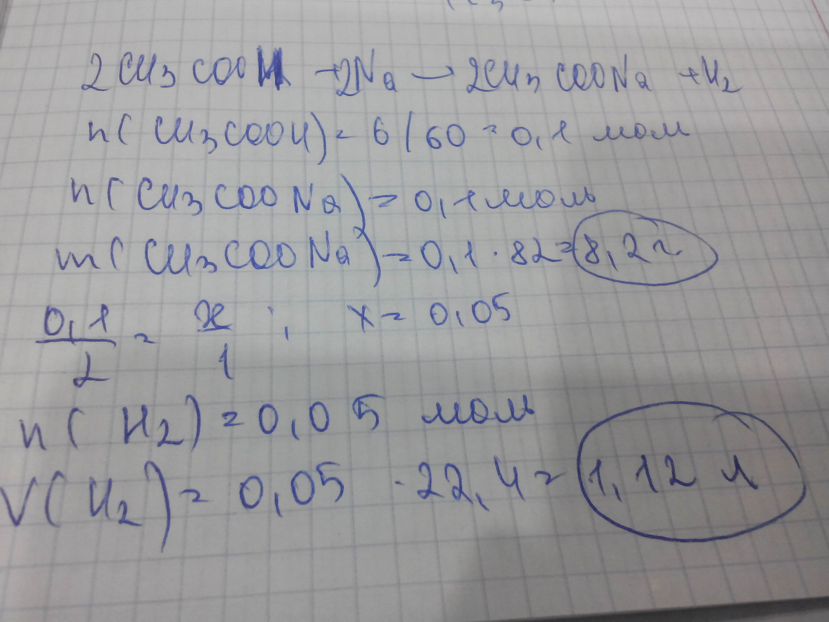 оцитова кислота массой 6г провзаемодияла с натрием.обчислиты массу соли и объем водорода что утрорився при этом?