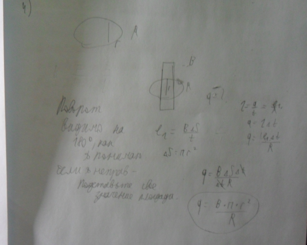 4.Горизонтальное металлическое кольцо радиусом r и сопротивлением R находится между полюсами вертикально расположенного магнита.Магнитное поле можно считать однородным.Модуль магнитной индукции B.Определите заряд q,который пройдет по кольцу,если его повернуть с одной стороны на другую. P.S. Заранее,безумно благодарна тем,кто решит хоть одну задачу.Очень выручите безмозглую:)