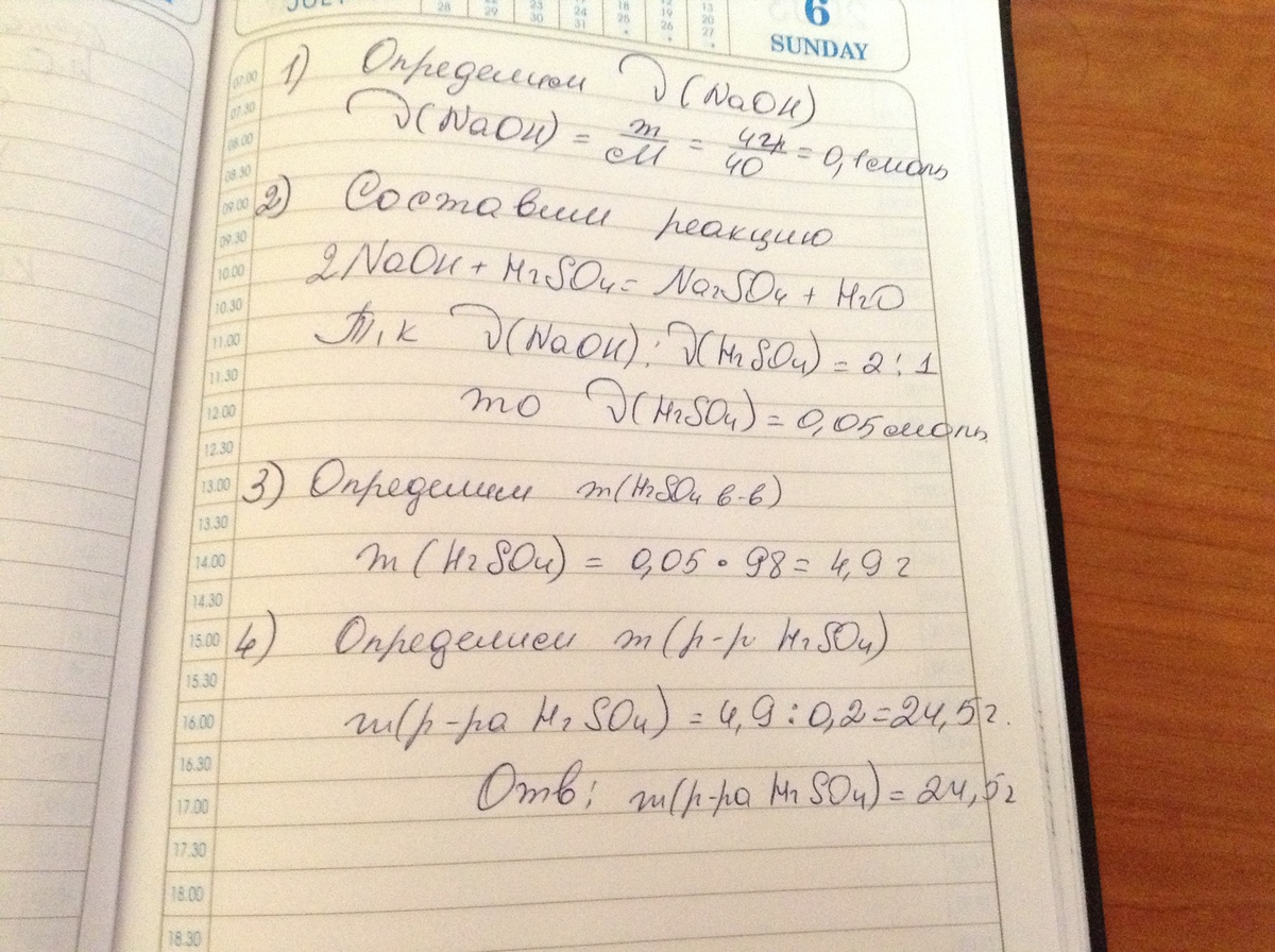 чему равна масса раствора серной кислоты с массовой долей 20% необходимой для нейтрализации рамтвора содержащего 4 г гидроксида натрия