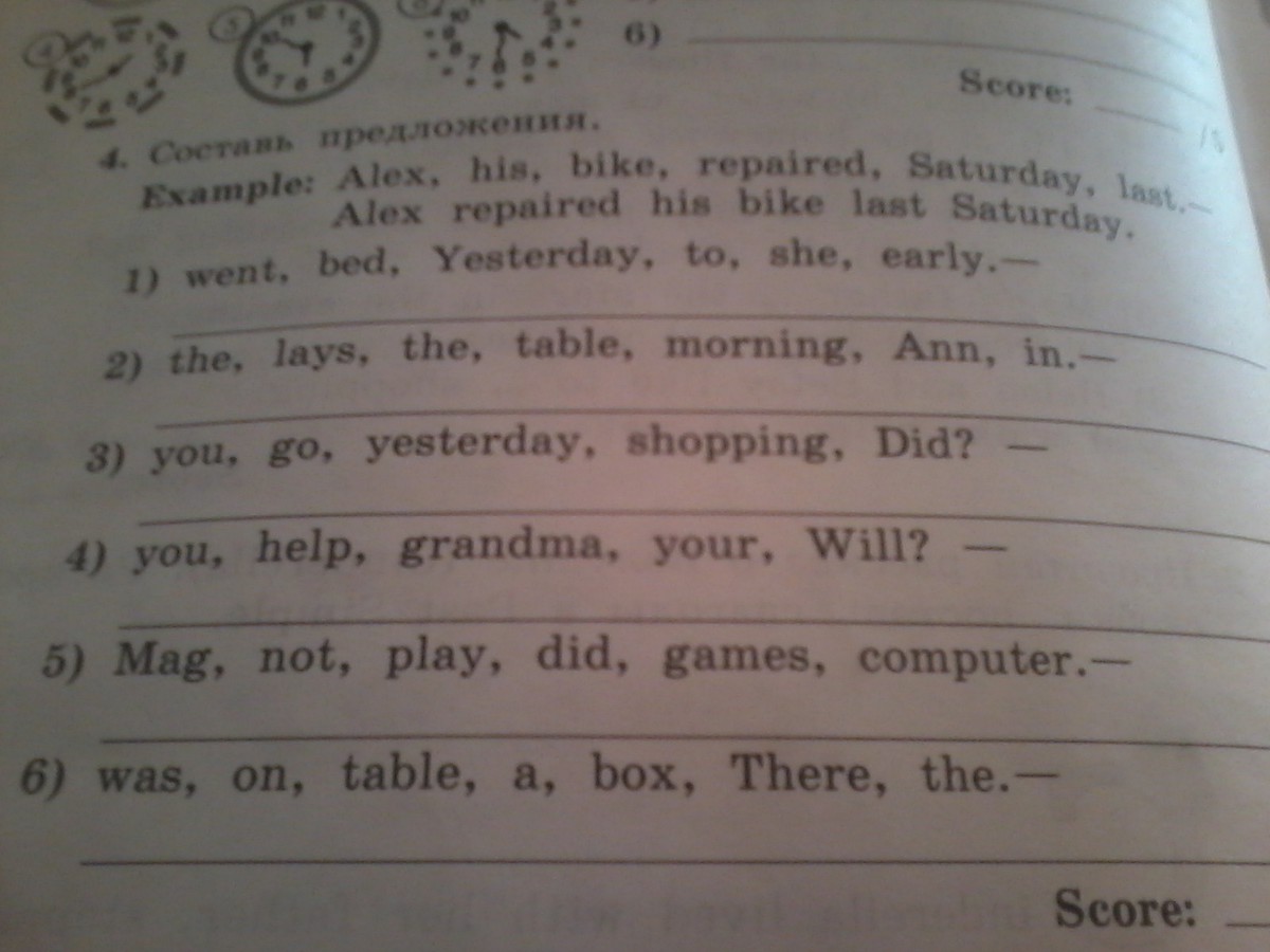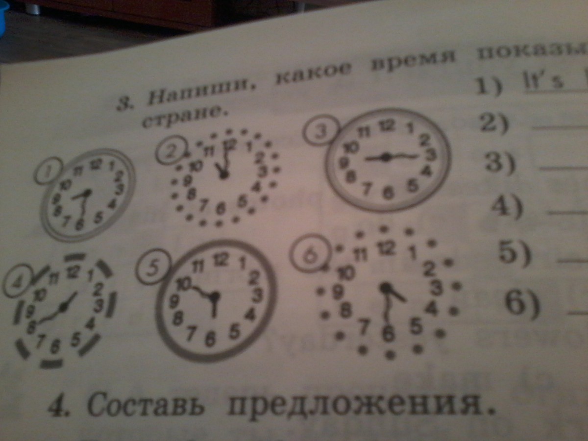 3) 2 It's eleven o'clock. 3 It's a quarter past nine. 4 It's twenty to one. 5 It's ten to six. 6 It's half past four.