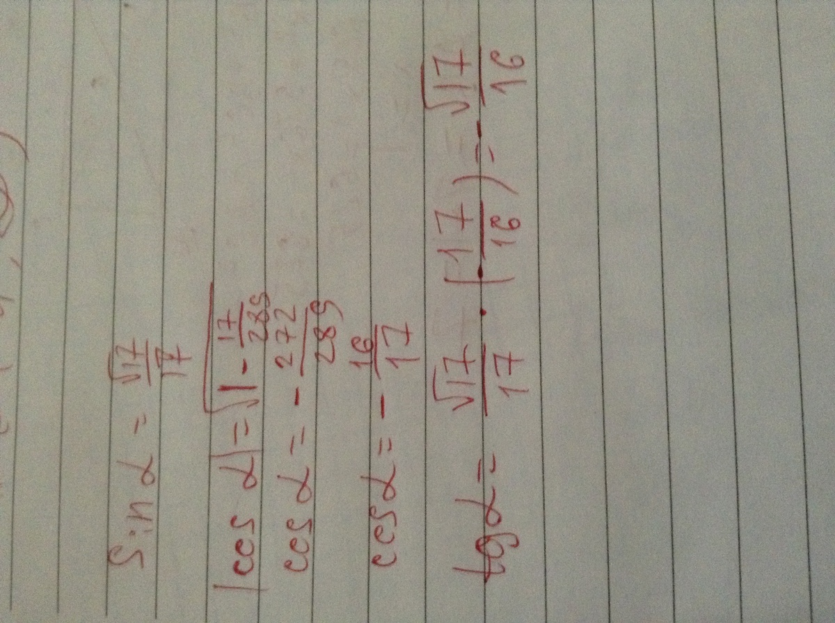 Найдите tgA, если sinA= √17/17 и 90° < А < 180°