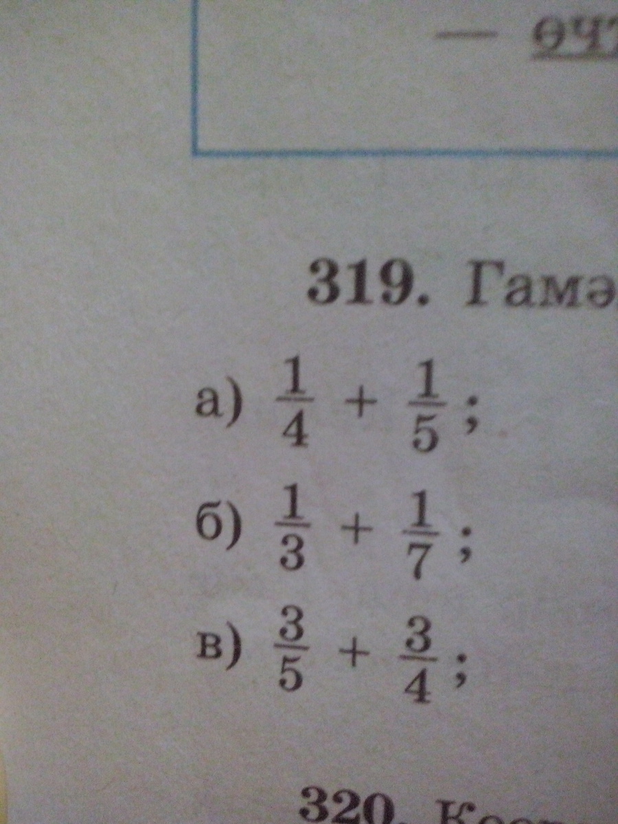 \frac{1}{4}+ \frac{1}{5}= \frac{5}{20}   + \frac{4}{20} = \frac{9}{20}  \\  \frac{1}{8}+ \frac{1}{7}= \frac{7}{56}   + \frac{8}{56}= \frac{15}{56}   \\  \frac{3}{5} + \frac{3}{4}= \frac{12}{20}  + \frac{15}{20} = \frac{27}{20}= 1\frac{7}{20}