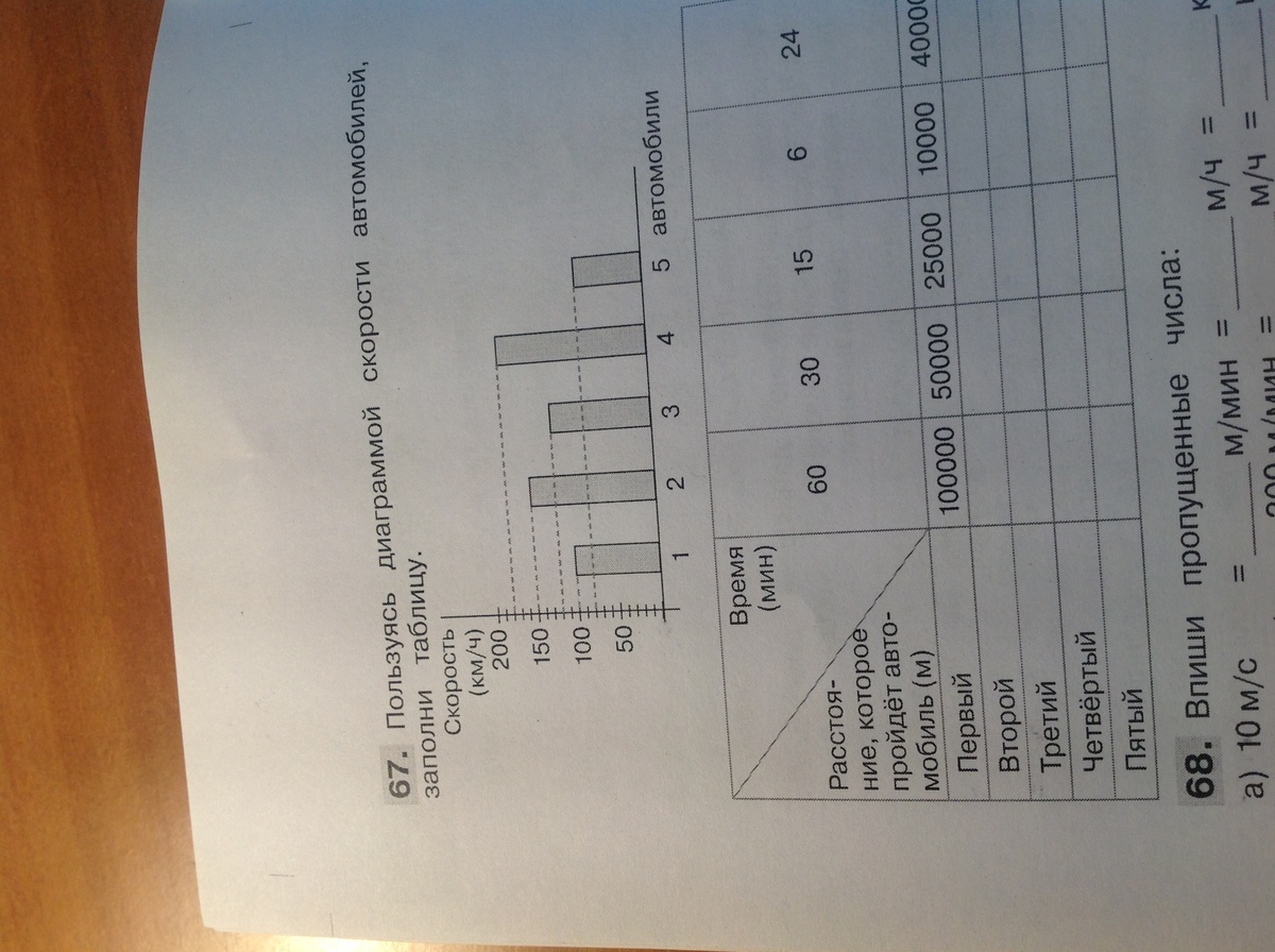 НАРОД ПОМОГИТЕ !!Пользуясь диаграммой скорости автомобилей, заполни таблицу. (См. таблицу и диаграмму в фотографии.)
