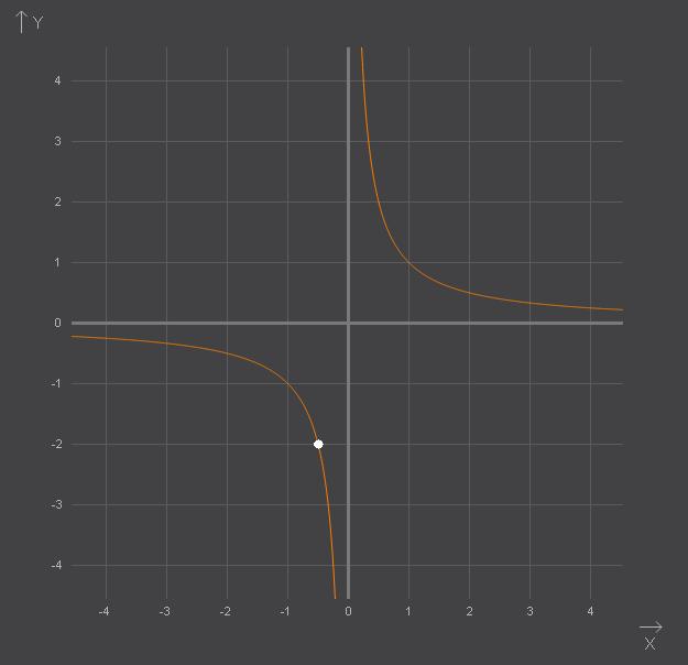 Но, так как наша гипербола отличается от стандартной выколотой точкой, то рассмотрим прямую, проходящую через эту точку: