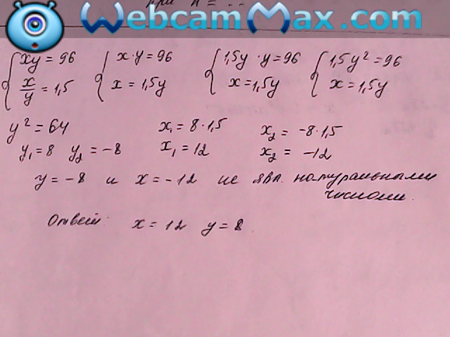 произведение двух натуральных чисел равно 96 а значение их отношения равно 1,5.Найдите эти числа.вот и всё задание