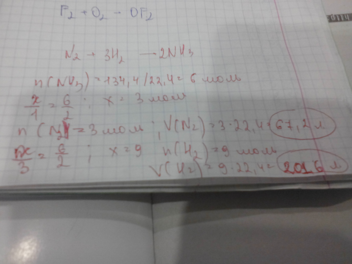 сколько литров азота и водорода необходимо для получения 134,4 литров аммиака? пожалуйста срочно нужно
