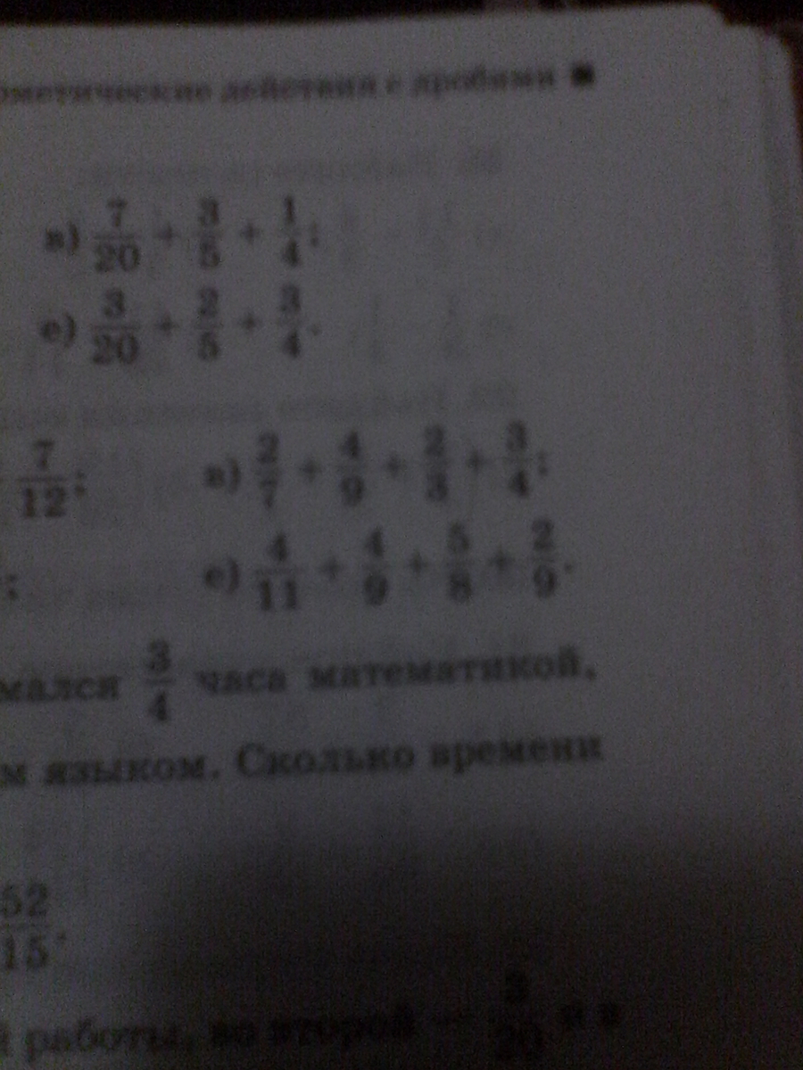 3/20 + 2/5 + 3/4 = 3/20 + 8/20 + 15/20 = 26/20 = 13/10 = 1 3/10 = 1,3
