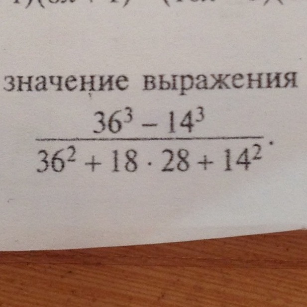 (36³-14³)/(36²+18*28+14²)=((36-14)*(36²+36*14+14²))/(36²+36*14+14²)=36-14=22