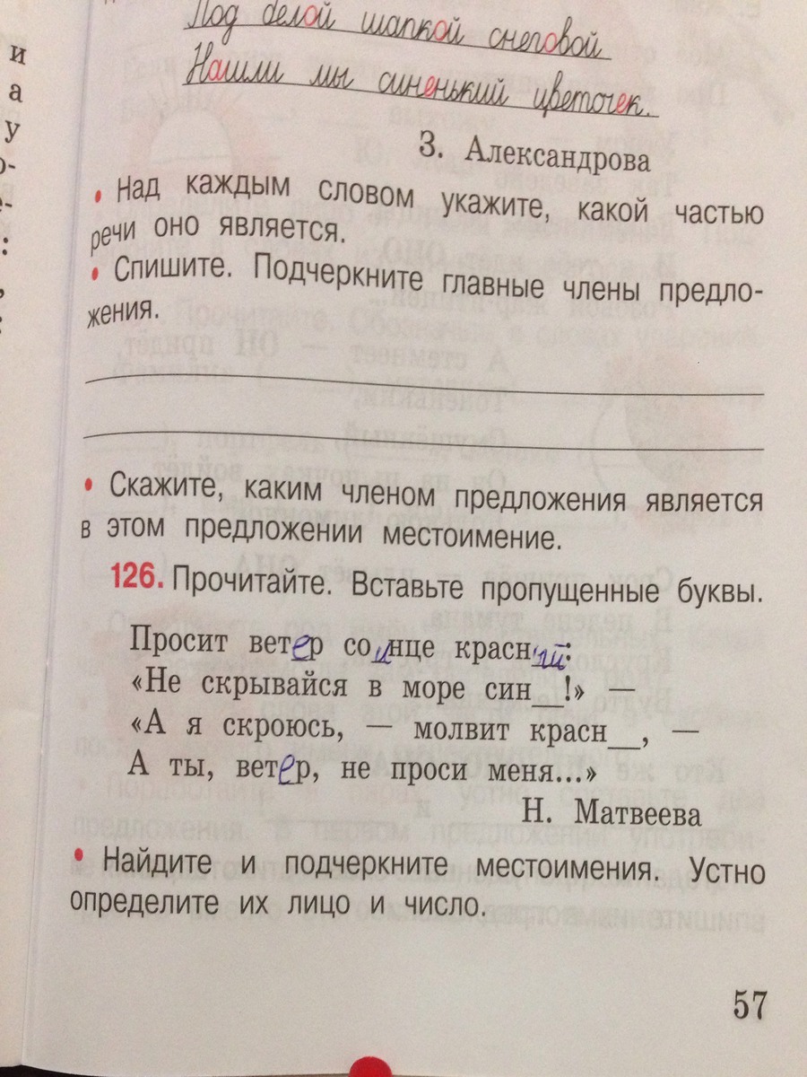 Сначала запишем стихотворение и вставим пропущенные буквы, подчеркнем местоимения: