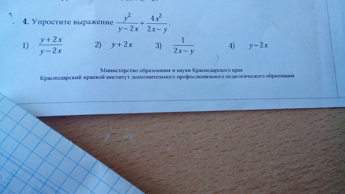 (Y+2x)(y-2x)/2x-y=y+2x. Ответ:2