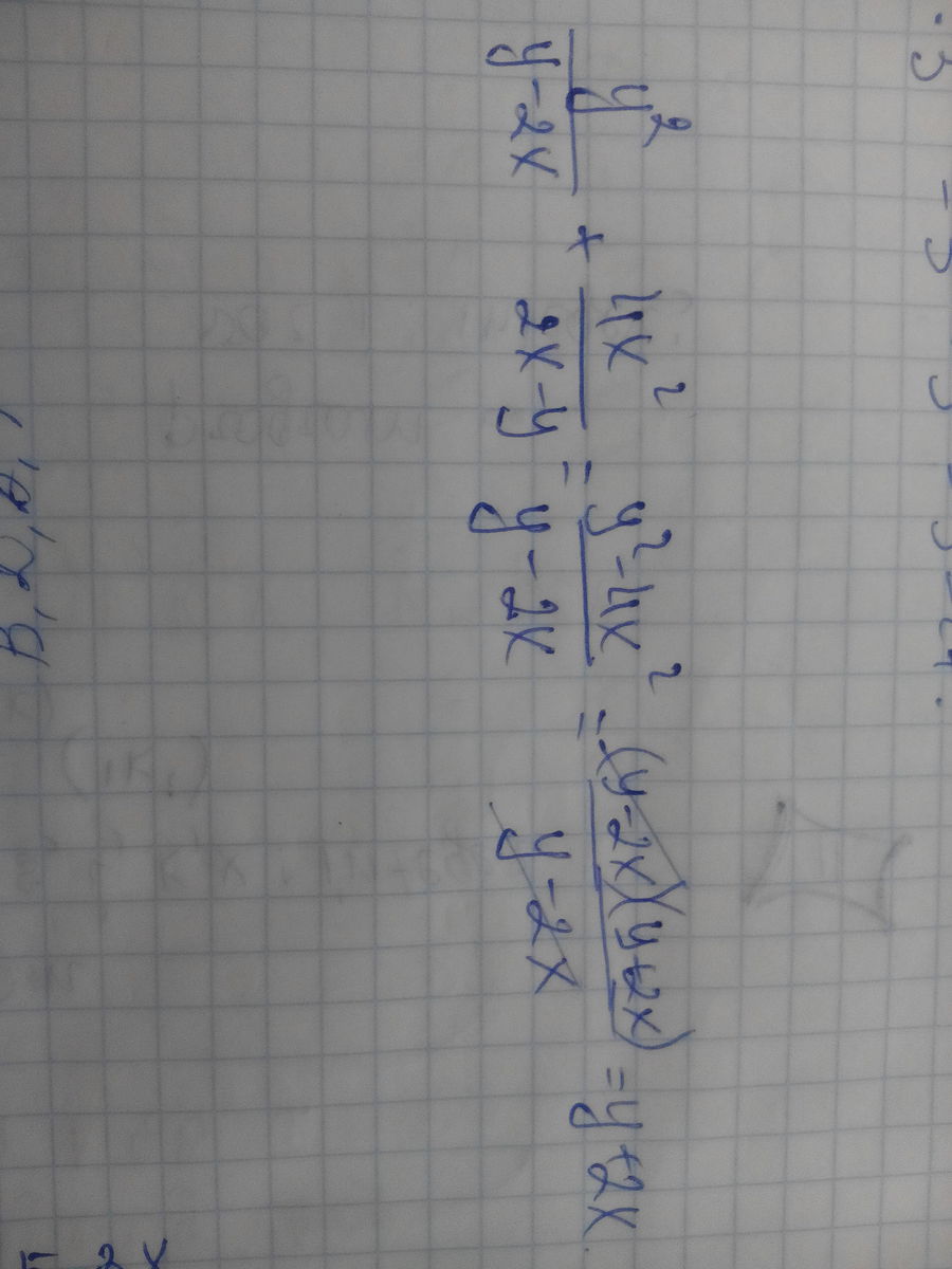 y²/y-2x + 4x²/2x-y=y²/y-2x - 4x²/y-2x = y²-4x²/y-2x = (y-2x)(y+2x)/y-2x =y+2