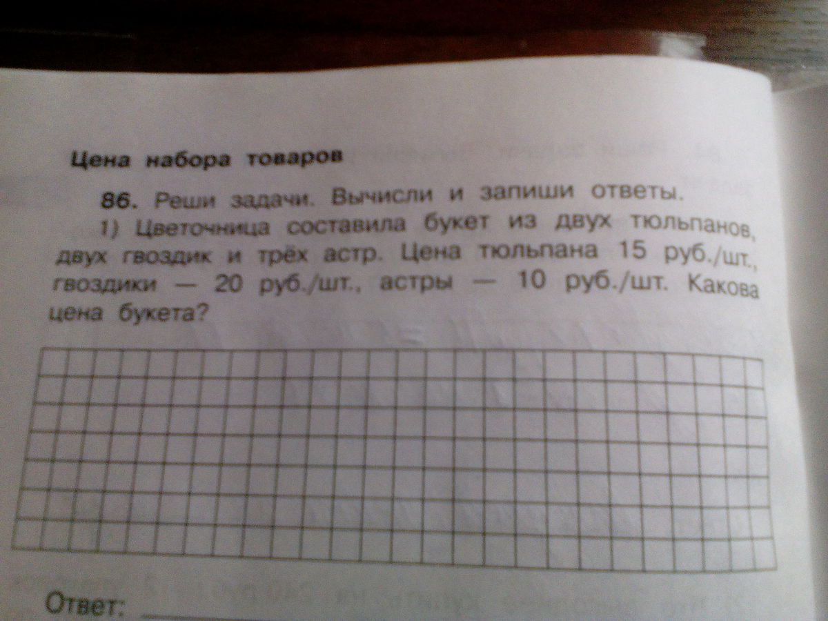 4) 30 + 30 + 40 = 100 (руб) - стоит один букет