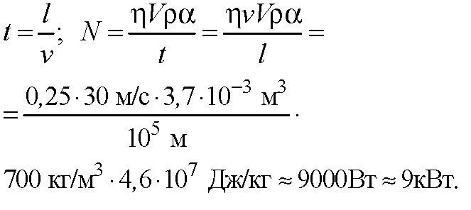 Какую среднюю мощность развивает двигатель мотоцикла, если при скорости движения 108 км/ч расход бензина составляет 3,7 л на 100 км пути, а КПД двигателя 25% ?