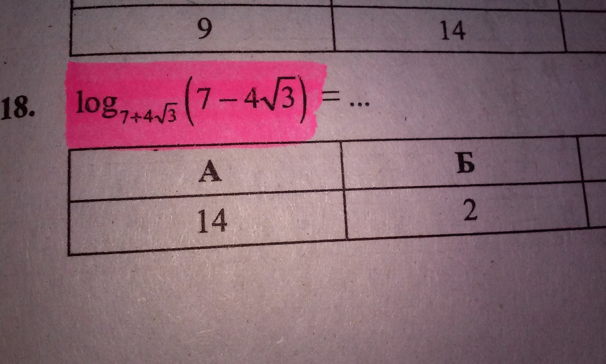 итак, имеем log(7+4√3) (7-4√3)=log(7+4√3) (7+4√3)⁻¹=-log(7+4√3) (7+4√3)=-1