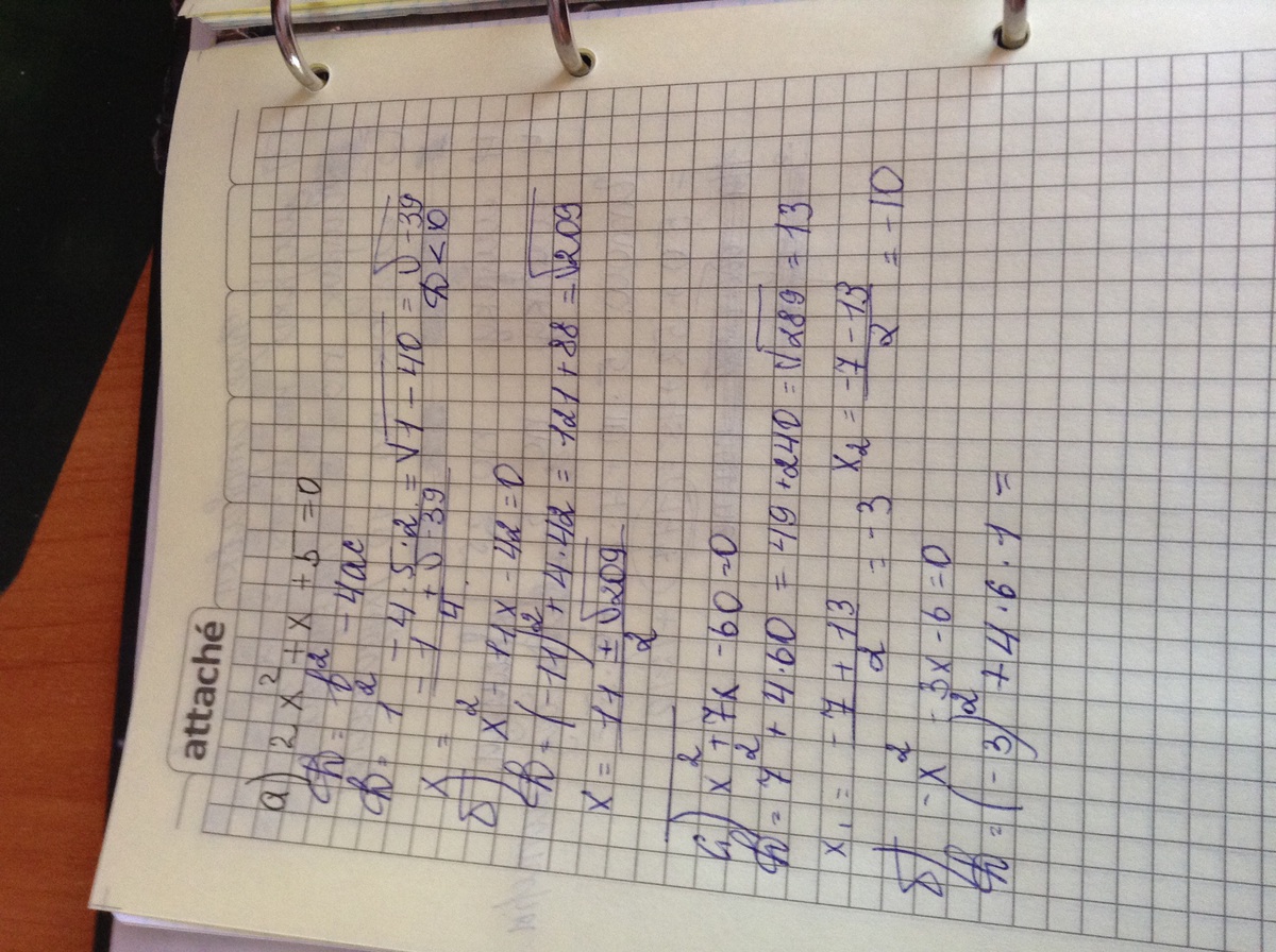 а)x2 + 7х - 60 = 0; б)-x2 -3x - 6 = 0.