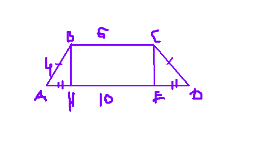 прямоугольные треугольники АВН и СДЕ равны по гипотенузе и острому углу (углы при основании равны и боковые стороны трапеции равны)