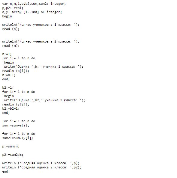 Известны оценки по физике каждого ученика двух классов. Определить среднюю оценку в каждом классе. Кол-во учащихся в классе - не более 25