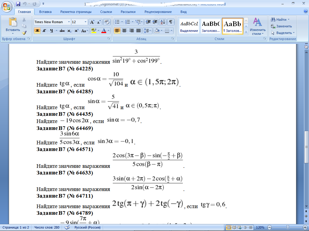 tg a = sin a/ cos a