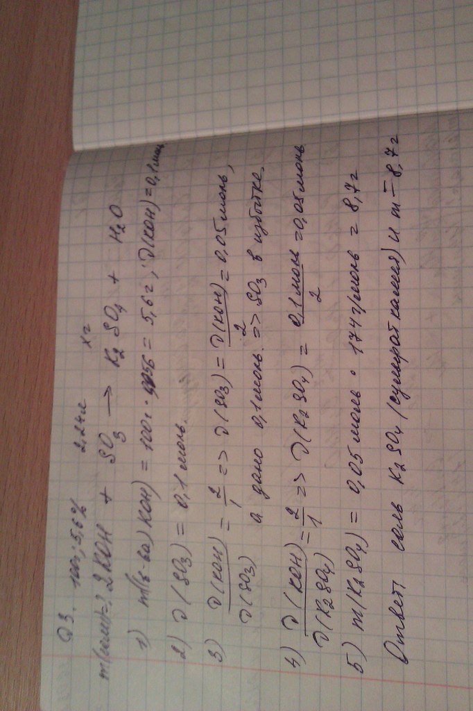 Через раствор КОН масой 100г с масовой долей КОН 5,6% пропустили серный газ объемом 2,24л. Какая соль образовалась? Найти массу соли?