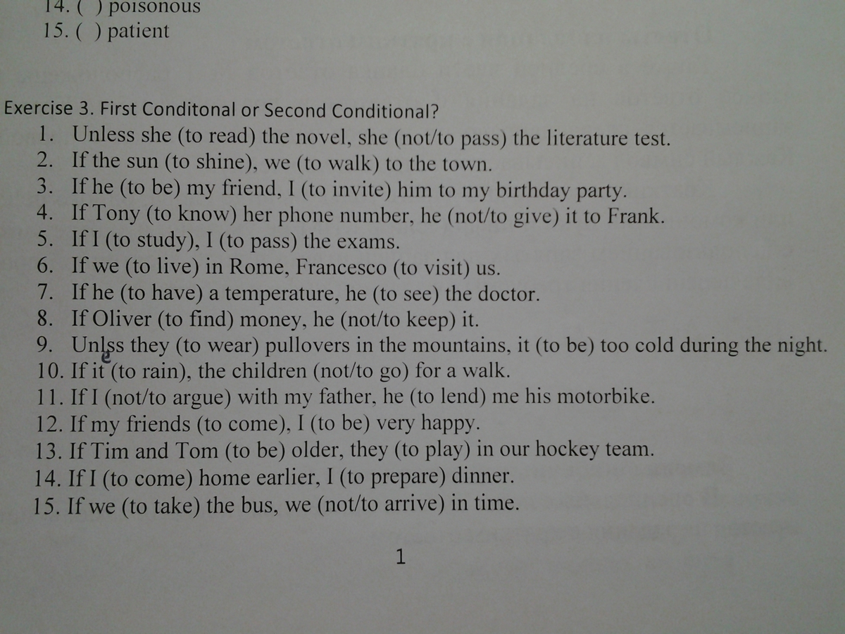 11. If I didn't argue with my father, he would lend me his motorbike.