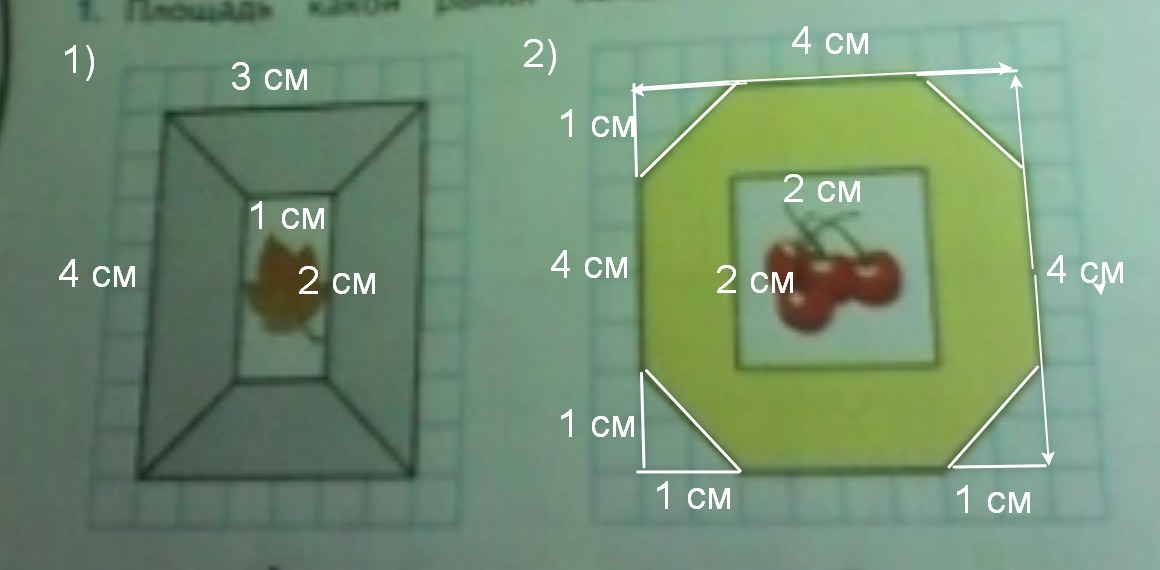 1) Внешние стороны рамки равны 3 см и 4 см, S₁=3*4=12 см²;