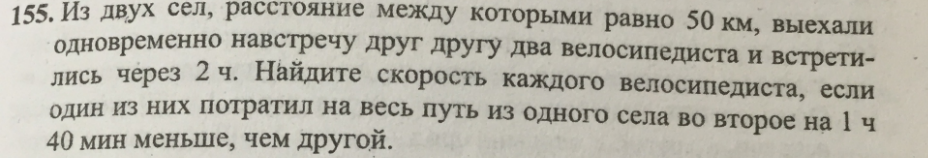 Ответ: скорость одного велосипедиста 10 км/час, а другого - 15 км/час