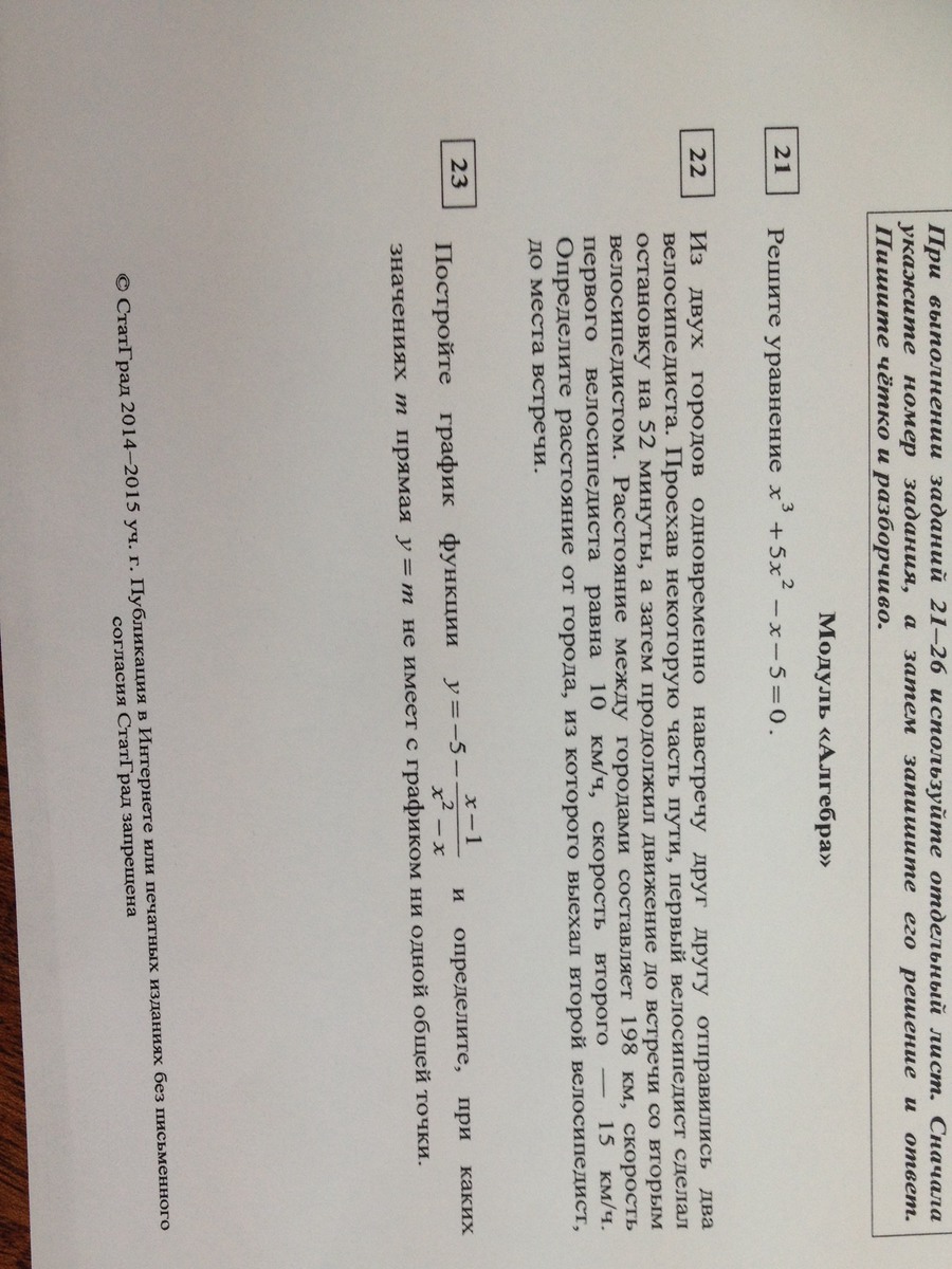 1-й проехал 10*x км, а 2-й- 15*(x+52/60) км,но т.к. они встретились, то вместе они проехали путь, равный расстоянию между городами.