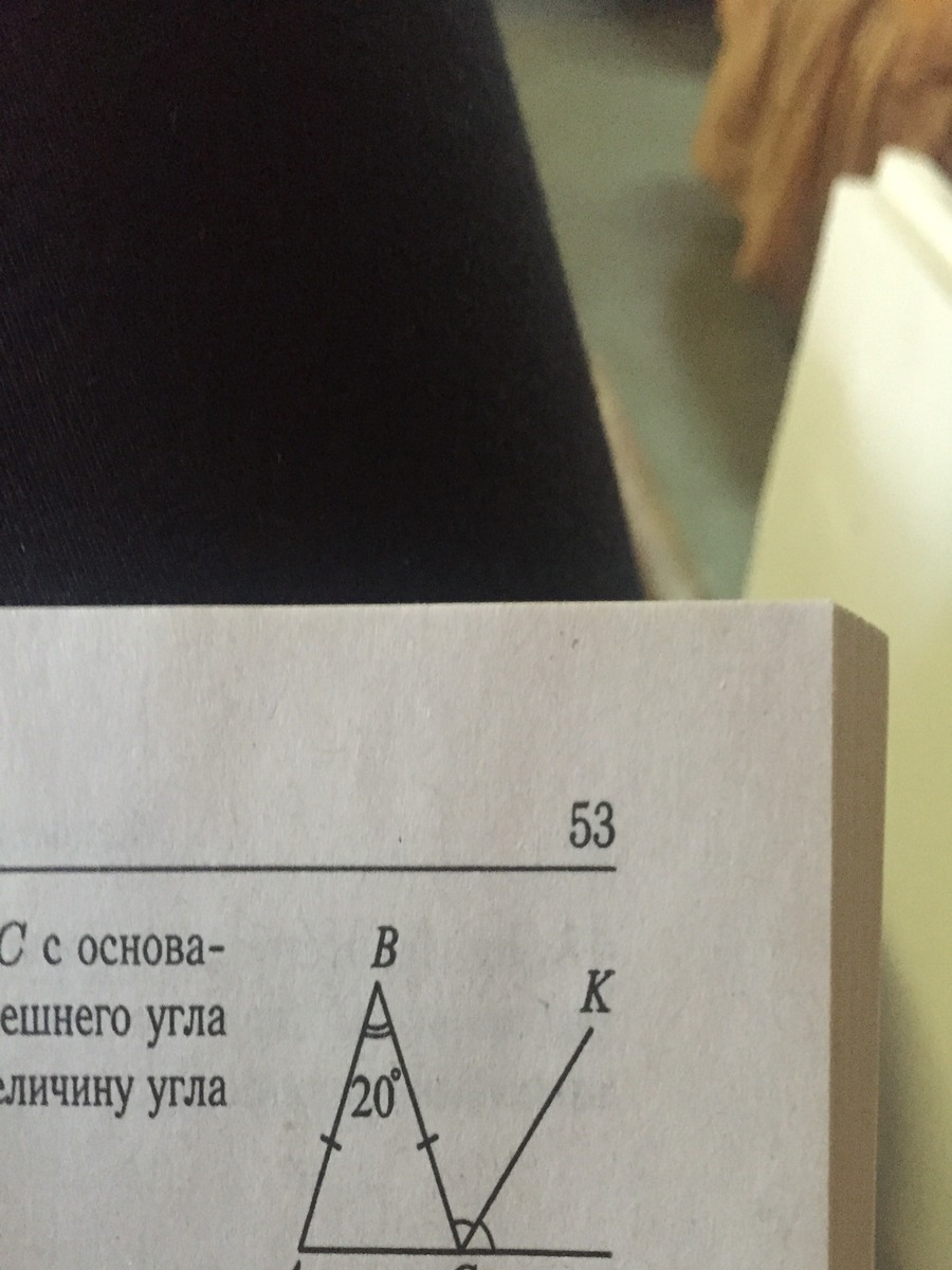 В равнобедренном треугольнике ABC с основанием AC проведена биссектриса CK внешнего угла при вершине C . Найдите величину угла BCK (в градусах), если угол ABC = 20 градусов