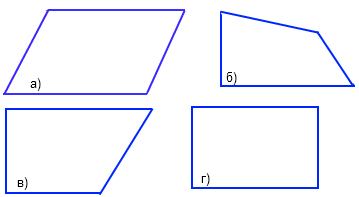 начерти четырехугольник который а)не имеет ни одного прямого угла;б)имеет только один прямой угол;в)имеет два прямых угла;г)имеет три прямых угла