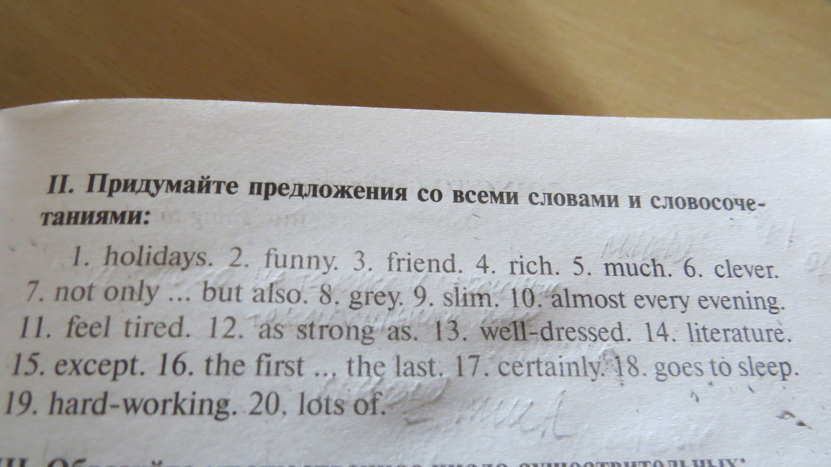 9.my brother slim10.Almost every evening we drink tea.11.Coming from the training I feel tired12.I love my mom so strong as the father13.Well-dressed woman walked past me.14.Next lesson we have literature.15All were healthy except for his brother.17Certainly help you with your homework.18my dad went to sleep19I am very hardworking20.I have a lot of friends