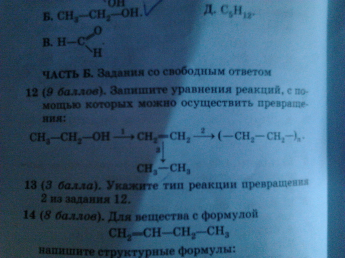 12) 1) СH3-CH2-OH -> CH2=CH2 + H2O (t>140C, H2SO4)